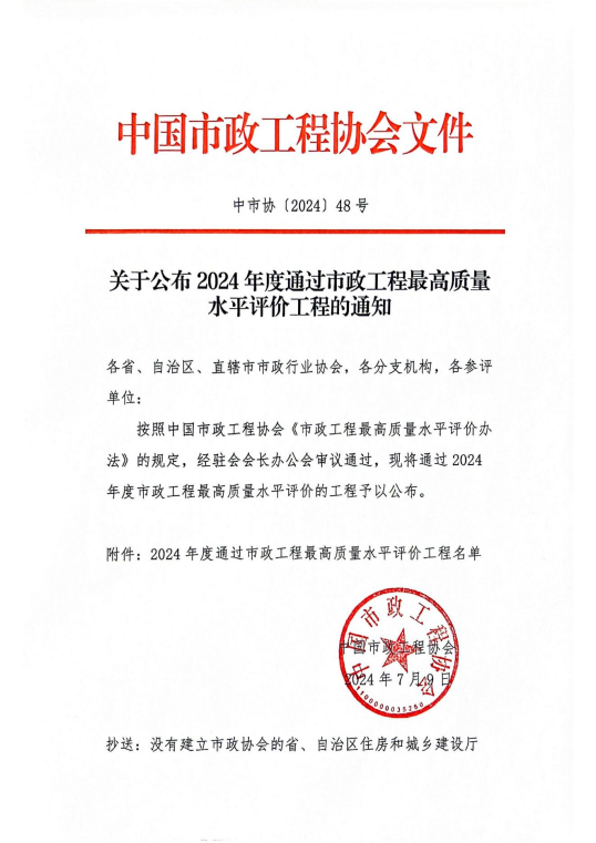 市政工程最高質(zhì)量水平評價(原(yuán)中國市政金杯示範工(gōng)程)由中國市政工程協會組織實施,是(shì)市政工程行業(yè)在工程質量方(fāng)麵最高的質量水平評價(jià),代表市政工程行業同(tóng)時期國內先進水平。