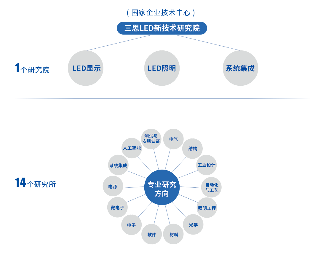 科技創新是上海三(sān)思自創立以來(lái)保持穩健發展(zhǎn)的源動力。截至目前,公司的研發團隊人數近500人,涵蓋人工智能、係統集成、材料、微電子、光學、軟件、結(jié)構、電源、自動化與工藝等(děng)十四個專項領域,構建起強大(dà)的基礎研究(jiū)和技術創新實力,多年來先後承擔十一五、十二五“863” 半導體照明(míng)重(chóng)點攻關課題、十二(èr)五科技支撐計劃 LED 照明(míng)項目課題、十三五國家重點研發計劃等牽頭單(dān)位。