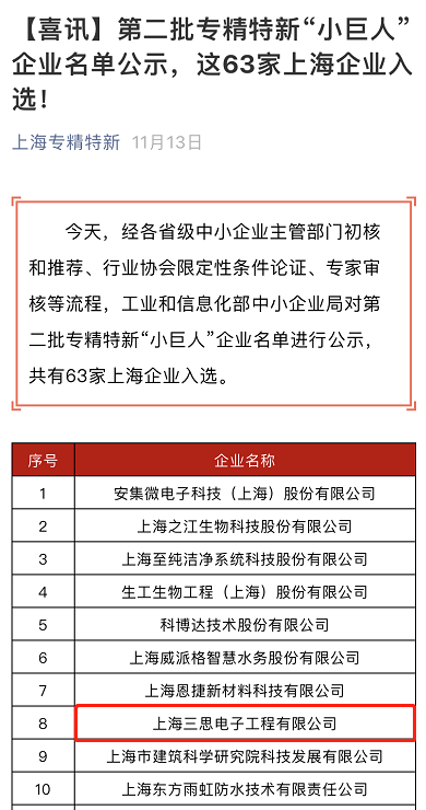 去(qù)年11月(yuè)13日(rì),上海婷婷婷影院還入(rù)選工業和信(xìn)息化部辦公(gōng)廳“第二批專精特新小巨人企業培育”名單(dān),進一步(bù)推動企業高質量發展(zhǎn),提(tí)高企業專業化(huà)能力和水平。