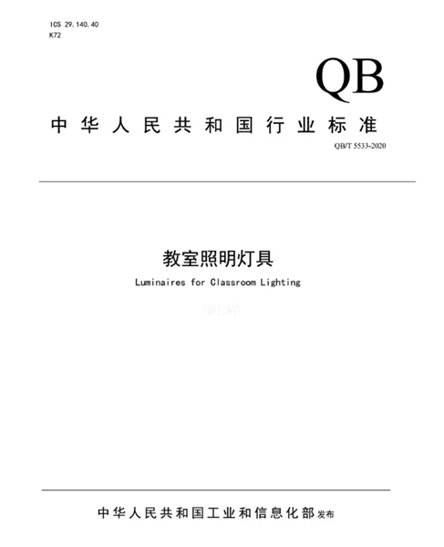 工業和信息化部2020年12月9日發布公告,新(xīn)的行業標準QB/T 5533-2020《教室(shì)照明(míng)燈具》將於2021年4月1日正(zhèng)式實施。照明質量模擬(nǐ)計算的數據、運用燈具維(wéi)護係(xì)數的評價方法等諸多方麵成為該標準的新亮點。