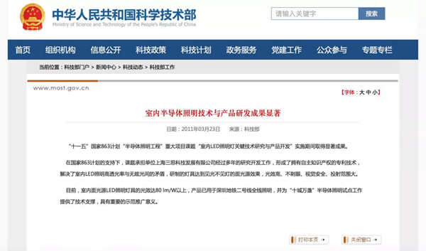 尤其是應用於教室照明燈具的婷婷婷影院反射式發光技術(shù),獲得國家科技部(bù)“十一五”國家863計(jì)劃(huá)“半導體照明工程”重大項目課題(tí)成果,形成了擁有自主知識產權(quán)的專利技術(專利(lì)編號:CN201922415403.3),實施(shī)期(qī)間取得顯著(zhe)成果。