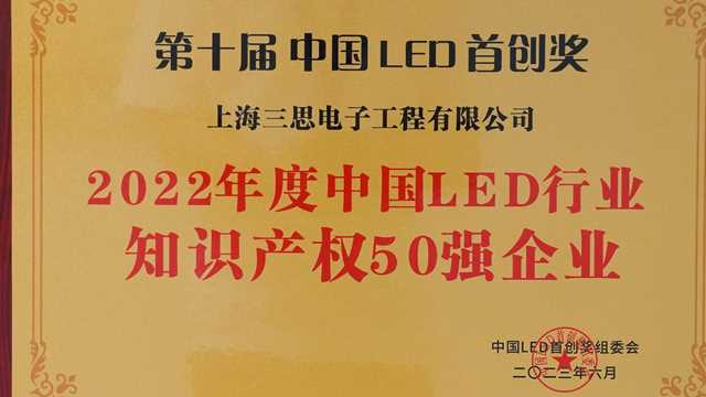 2023年6月9日,以“開啟(qǐ)中國(guó)LED高質量發展黃金新十年”為主題的第十屆中國LED首創獎頒(bān)獎典(diǎn)禮在廣州朗豪酒店隆重舉行,上海婷婷婷影院電子工程(chéng)有限公司(以下簡稱(chēng)上(shàng)海婷婷婷影院)榮(róng)獲第10屆中國LED首(shǒu)創獎“2022年度中國LED行業知識產權50強企業”。