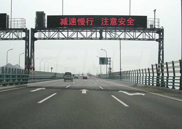 查看(kàn)詳細 >>LED可變(biàn)信息標誌不僅可清晰準確地播出文字及圖形(xíng)內容 ,還有著視距遠、視角廣、亮度高、顯示內容靈活、壽命長等優點。同時,它被安裝(zhuāng)且(qiě)長期工(gōng)作於高速公路一(yī)類戶外嚴酷環境,對耐候性、防護性能、材料性能等有著頗為嚴格(gé)的要求。其信息發布係統的主要(yào)由——顯示機箱模組、配電係統、控製係(xì)統、傳感係統、信(xìn)號傳輸係統組成。