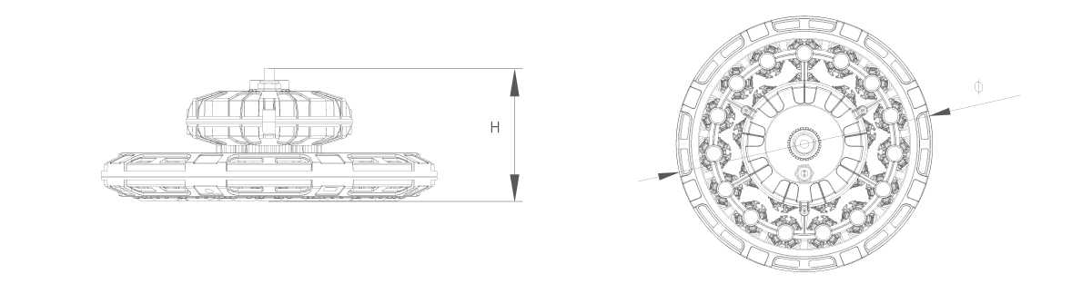 C2300-BE-180W/200W | 176 ~ 264 VAC 50/60Hz | ≥ 80 | 30º/60º/90º/120º | PC + 陶瓷像素 | 掛鉤(gōu) / 吊杆 / 吊鏈 | 常亮/DALI/0-10V | Φ341*H134mm | 約3.44KG |