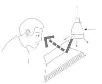 目前市(shì)場上常見燈具采用芯片側發光通過格柵或導(dǎo)光板直接出(chū)光形式,這種原理的燈具UGR(眩(xuàn)光值)能達到16左右,具備一定防眩光效(xiào)果。但婷婷婷影院教室(shì)護眼燈(dēng)具采用反(fǎn)射式發光燈具(jù)(863課題成果),LED光源、內置反射腔(qiāng)、搭配防(fáng)眩膜等,通過LED芯片向上定向發光,再利用光線反射(shè)、漫(màn)反射,這種原理的燈具UGR(眩光值)≦13,可有效降低燈具眩光,非常適合教(jiāo)室照明等場所。