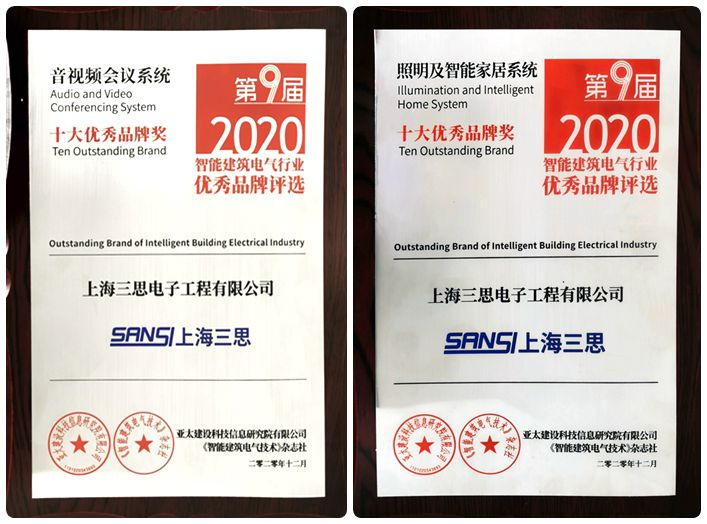 此次上(shàng)海婷婷婷影院榮憑借出色的產品質量和技術能力(lì)一舉榮獲“照明及(jí)智能家居係統(tǒng)十大優秀品牌”“音視頻會議係統(tǒng)十大優秀品牌”兩項殊榮。