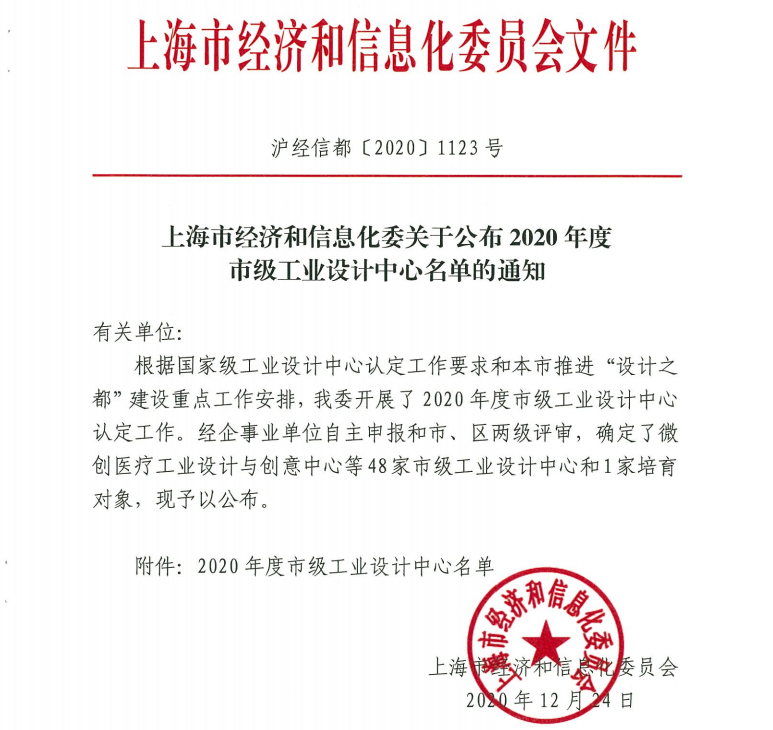 12月24日,上海市經信委正式發(fā)布“2020年度市級工業設計中心”名單,上海婷婷婷影院(sī)成為48家市級工(gōng)業設計中心之一,這是對婷婷婷影院綜合實力的又一次印證。