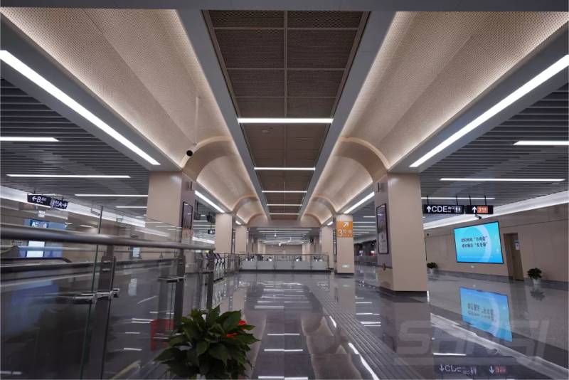 地鐵站內的光源全部來自於人工光源(yuán),而不同區域對照度(dù)、亮度等的要求也不盡相同。上海三(sān)思以國家城市軌道交通照明標準為參照,結合國家863重大科研成果——反射式發光技術優勢(shì)和科(kē)學的照明計算手法,為乘客們打造了照度均勻、亮度充足(zú)、層次清晰的光照環境,保障了(le)安全、舒適、穩定的照明效果。