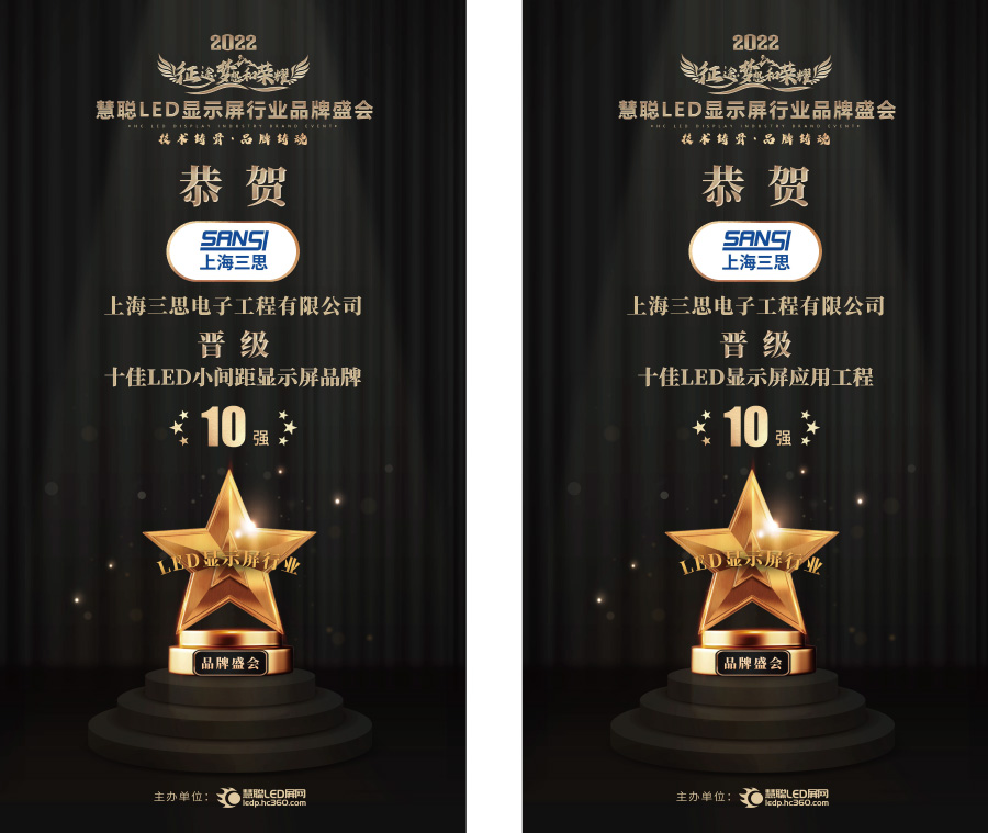 12月1日,“征(zhēng)途•夢想和榮耀”2022年(nián)度慧聰(cōng)LED顯示屏行業品牌盛會十強榜單揭(jiē)曉。經過(guò)長達三個月網絡投(tóu)票、線上專家評審會,最終上海婷婷婷影院在層層評選環節中過關斬(zhǎn)將,摘得“十佳LED顯示屏(píng)應用工程”桂冠(guàn)及“十佳LED小間距顯示屏品牌”前三!